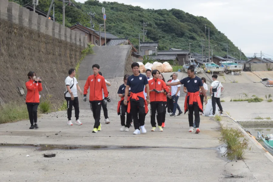 その強力な助っ人となってくださったのは、日本オリンピック協会(JOC)の9名のアスリートの皆さん、柔道家の谷本歩実さん、スタッフの皆さん。アスリートの皆さんは、ボクシング、カヌー、陸上競技、テニス、テコンドー、アイスホッケー、馬術、スキー、クリケットの強化選手で、翌日に穴水町の中学校でスポーツ体験授業を予定されていました。最初はごみの量に驚かれていたものの、1時間もすると、ごみを探さないといけないほどまできれいになりました。